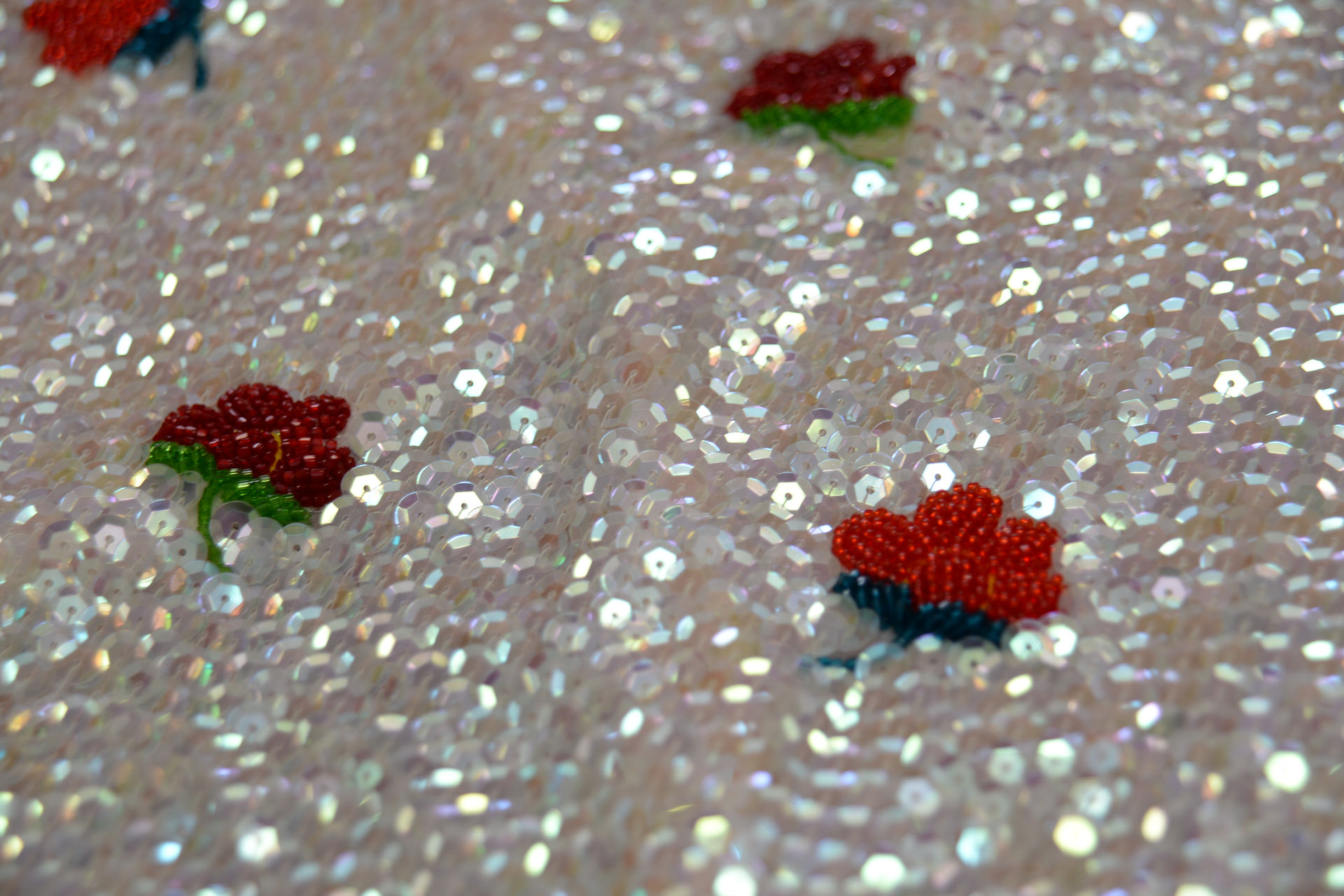 スパンコードは手作業でバランスを見ながら配置します。